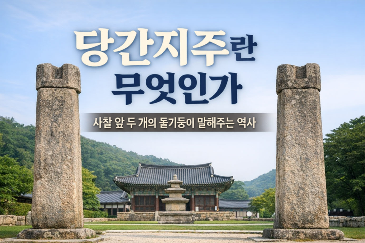 사찰을 답사하다 보면 절의 규모나 이름보다 먼저 눈에 들어오는 유물이 있다. 바로 서로 마주 보며 서 있는 두 개의 돌기둥, 당간지주(幢竿支柱)다. 화려하지도, 웅장하지도 않지만 이 단순한 석조물은 사라진 사찰과 불교 의식의 흔적을 오늘날까지 전해주는 중요한 문화유산이다. 이 글에서는 당간지주가 무엇인지부터, 왜 지금까지 문화유산으로 보존되고 있는지까지 차분히 살펴본다.1. 당간지주란 무엇인가?당간지주는 불교 의식에 사용되던 깃발을 세우기 위한 장대를 고정하던 석조 지지물이다.용어를 나누어 보면 의미가 명확해진다.당(幢) : 불교 법회나 의식 때 세우던 깃발간(竿) : 깃발을 매다는 긴 장대지주(支柱) : 장대를 받치는 기둥즉, 당간지주는 깃발 장대를 세우기 위해 땅에 고정한 두 개의 돌기둥을 의미한다...
