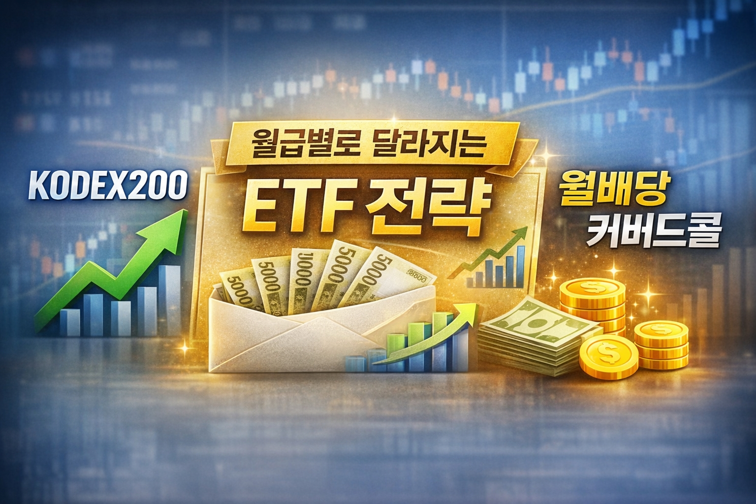 KODEX200·월배당 커버드콜, 나는 어떻게 투자해야 할까?지난 블로그에서는 'KODEX 200 ETF'와'KODEX 200 Target Weekly Covered Call ETF'가왜 ‘경쟁 관계’가 아니라 서로 역할이 다른 조합 대상인지 살펴봤다.그렇다면 이제 남은 질문은 하나다. “그래서 내 월급 기준에서는, 어떤 비중이 가장 현실적인가?” 이번 글에서는 추상적인 투자 조언을 벗어나,월급 수준별로 실제 적용 가능한 ETF 전략을 정리해 본다.1. 왜 ‘월급 기준 투자 전략’이 중요한가?청년 투자에서 가장 흔한 실패 원인은✔ 수익률에 대한 과도한 기대✔ 자신의 현금흐름을 고려하지 않은 전략✔ 몇 달 만에 포기하는 구조ETF 자체가 나쁜 경우는 거의 없다.문제는 자기 상황과 맞지 않는 비중이다.그래..