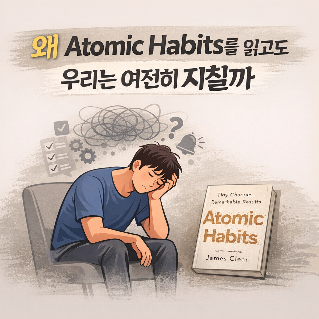 이 질문은 책에 대한 비판이 아니다. 오히려 반대다.『Atomic Habits』는 분명 좋은 책이고, 많은 사람들에게 “습관은 작게 시작해야 한다”는 중요한 관점을 남겼다. 실제로 이 책을 통해 운동을 시작했고, 독서를 이어갔으며, 일상을 조금씩 바꿔낸 사람들도 많다. 나 역시 이 책을 읽었고, 그 메시지에 고개를 끄덕였다.그럼에도 불구하고 이런 말은 여전히 반복된다.“책은 좋았는데, 나는 왜 그대로일까.”“읽을 때는 의욕이 생겼는데, 며칠 지나면 다시 지친다.”이 질문의 답은 의외로 단순하다.책이 틀린 것이 아니라, 우리가 책을 읽을 당시의 상태가 이미 달라져 있었기 때문이다.Atomic Habits는 틀리지 않았다먼저 분명히 해두자.『Atomic Habits』가 말하는 핵심은 지금도 유효하다. 습관은..